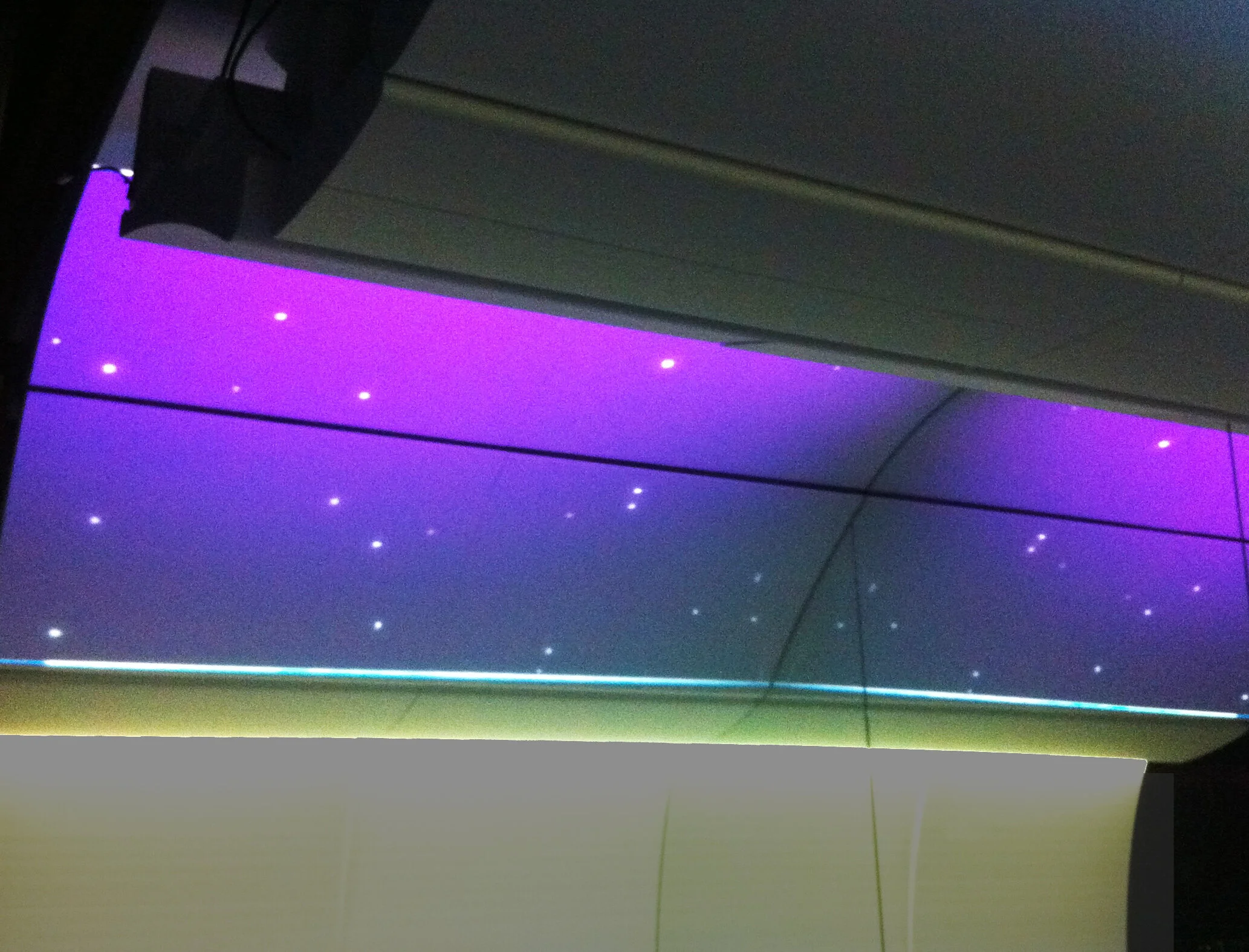 How can airlines quickly update their interiors, without taking their fleet offline? This future-focused concept used projection to enable real-time customization. By employing a smooth, seamless form language the cabin architecture becomes a canvas for an airline to create dynamic scenes that change at different phases of the passenger journey. For example, at breakfast time, flight attendants can transition to a morning sequence. This concept mockup was used to orient engineering teams toward a roadmap that included dematerialization and quick customization.